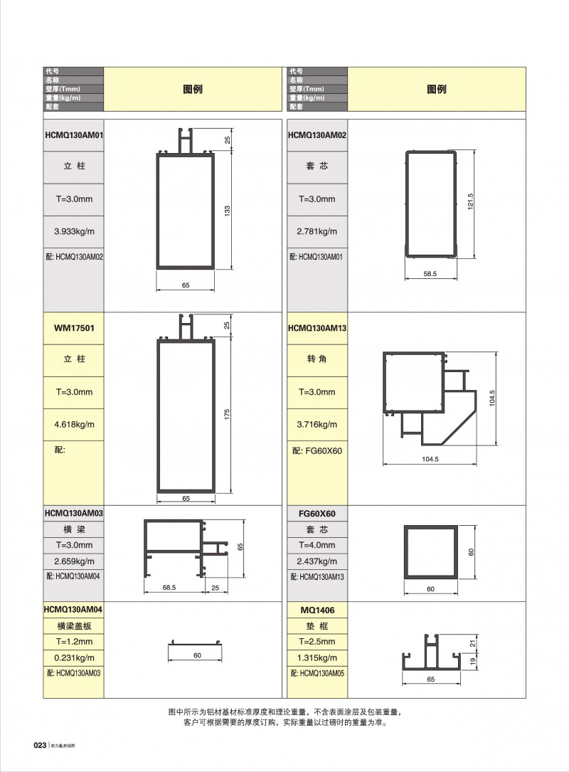 HCMQ130A、175系列明框(65寬)