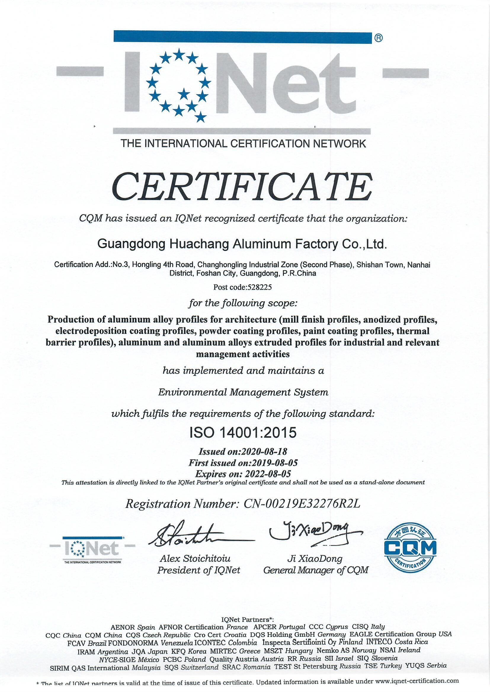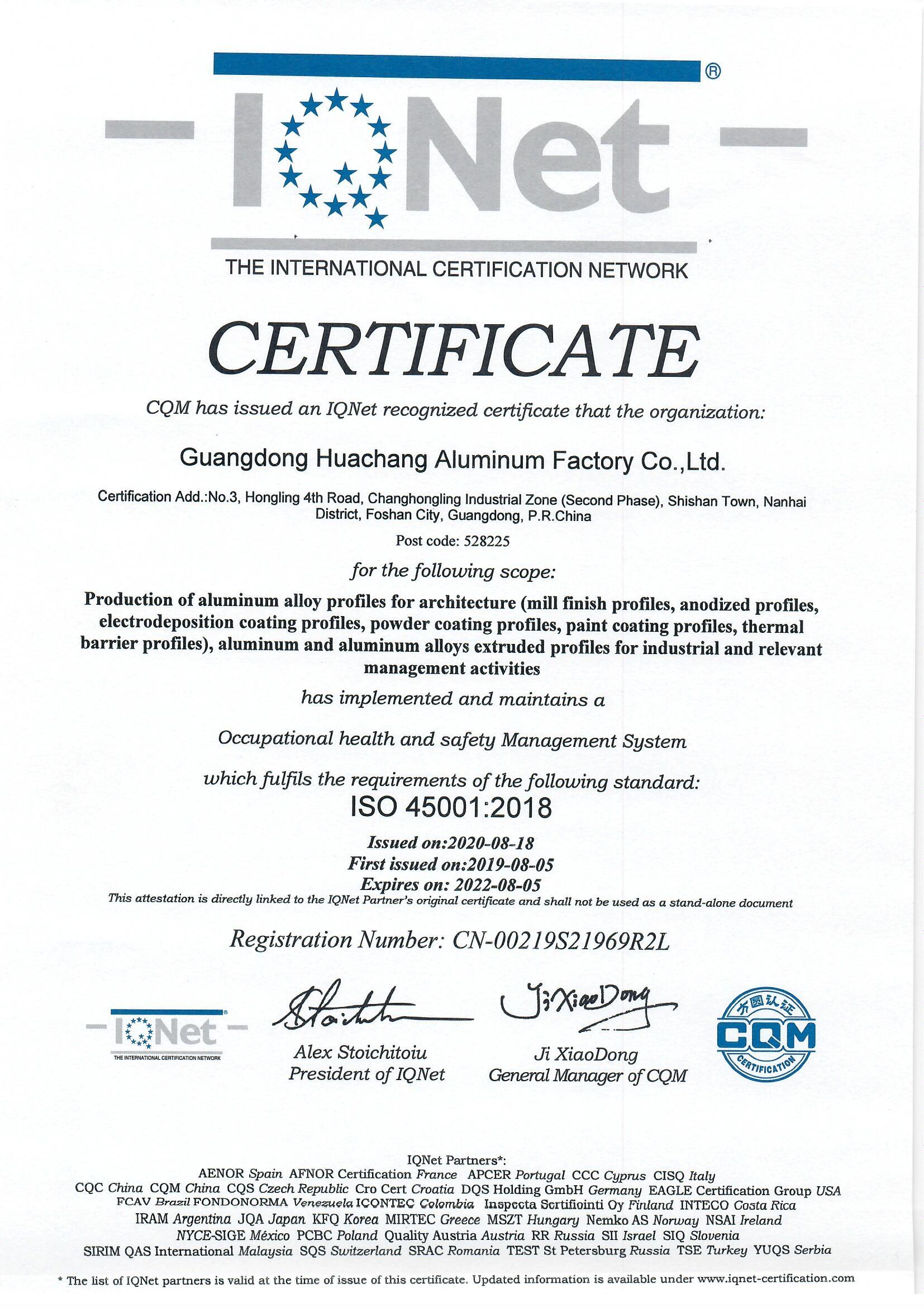 Guangdong Huachang Group Co., Ltd. adheres to a strict quality management system. According to the domestic and international standards, the group formulates and implements more stringent internal control standards. The company has passed the GB/T 19001 (ISO 9001) quality management system, GB/T 24001 (ISO 14001) environmental management system, ISO 50001 and RB/T 117 energy management system, GB/T 45001 (ISO 45001) occupational health and safety management system, IATF 16949 automotive management system, ISO/IEC 17025 national laboratory accreditation, good behavior of standardization, adoption of international standard products, green / low-carbon / energy-saving products and other certifications. In accordance with the quality management of "To be your sincere friend, to be your best Aluminium partner", Huachang is improving work efficiency and operation efficiency continuously.