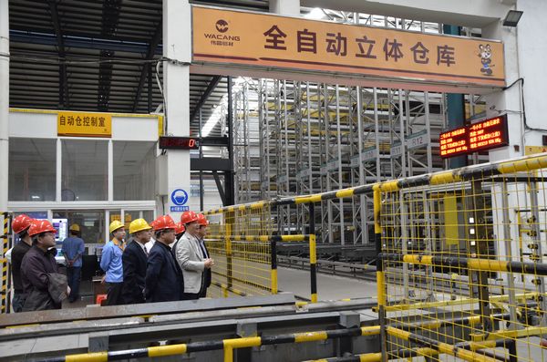 甄副縣長(zhǎng)一行首先考察了我公司的生產(chǎn)車間,對(duì)我公司先進(jìn)的生產(chǎn)設(shè)備與規(guī)范良好的管理贊不絕口,潘董事長(zhǎng)特別帶甄副縣長(zhǎng)一行參觀了全自動(dòng)智能立體倉庫,他向領(lǐng)導(dǎo)詳細(xì)介紹了自動(dòng)倉庫的特點(diǎn)及運(yùn)行,客人們看了自動(dòng)倉庫的運(yùn)行后,對(duì)這一行業(yè)領(lǐng)先的倉儲(chǔ)方式深表贊嘆。